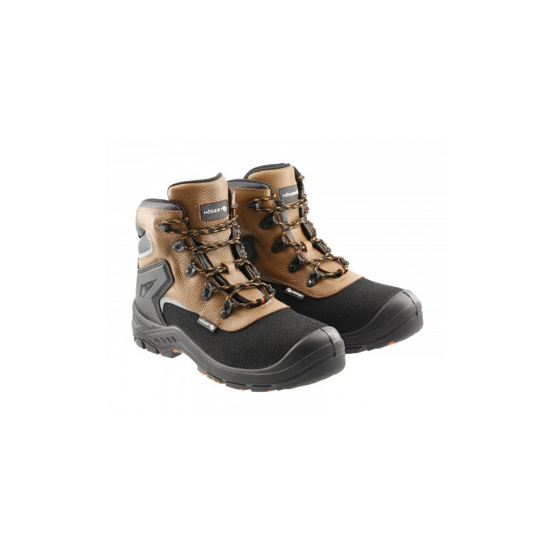 Apsauginiai batai MEPPEN Hogert HT5K591. Aukštos kokybės vyriška avalynė, sukurta siekiant užtikrinti saugumą ir efektyvumą skirtingomis darbo sąlygomis. Batų viršus pagamintas iš karvės odos, kuri yra atspari rūgščių ir šarmų poveikiui. Bato vidus pagamintas iš tekstilės medžiagų, o vidinis vidpadis – iš poliuretano putų HI-POLY, kuris daro įtaką komfortui. Papildomą pėdų apsaugą garantuoja kompozito viršus, kuris yra atsparus smūgiams iki 200 J. Pramušimui atsparus kevlaro įdėklas pade suteikia dar didesnį saugumą. Išorinis