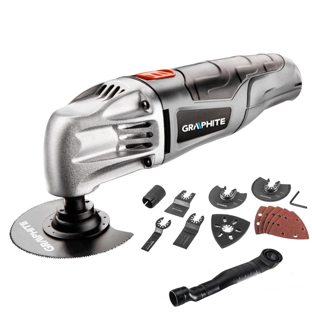 Komplektacijoje: lagaminas, šlifavimo ir pjovimo priedai, dulkių nusiurbimo antgalis, užveržimo raktas.