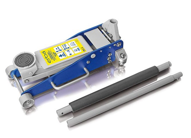 Kėlimo aukštis: 100 – 465mm Bendras ilgis: 659mm Aluminium/steel racing jack 2,5 tonTwin pump for faster lifting incl. slow descending valve as to EN1494