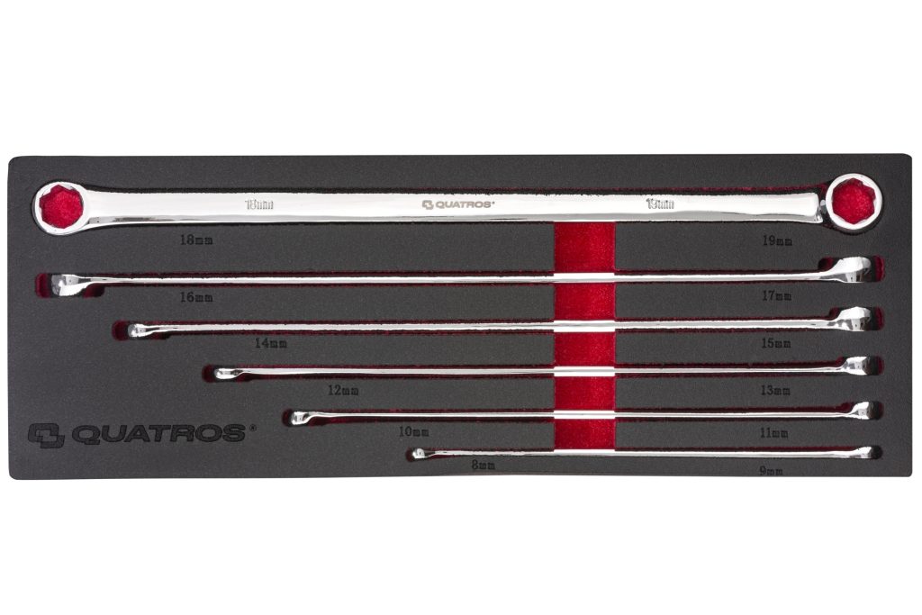Dvigubo žiedo, kilpinių extra ilgų raktų komplektas 8-19mm / su dėklu vežimėliui 6vnt.