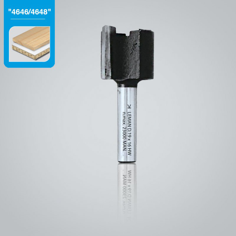 2 flute bit. For flush trimming in wood and synthetic panels, guided by a ball bearing pilot