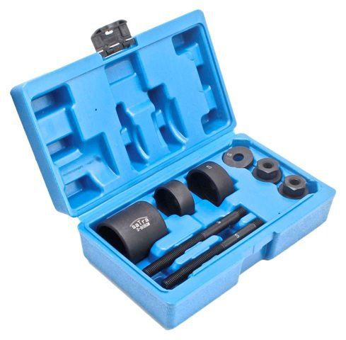 Komplektas pritaikytas automobilio galinėje dalyje esančioms valdymo svirties apatinėms ir viršutinėms metalinėms-guminėms įvorėms nuimti/sumontuoti.