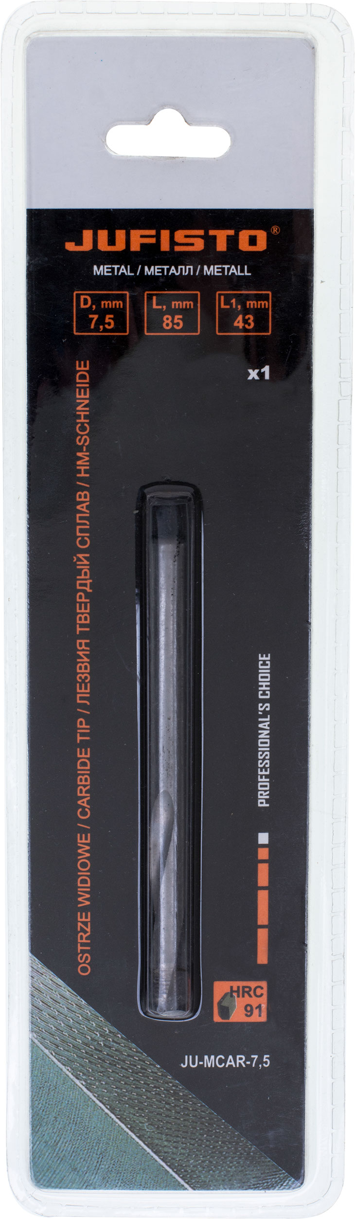 Grąžto diametras – 7,5 mmIlgis – 85 mmDarbinis ilgis – 43 mm