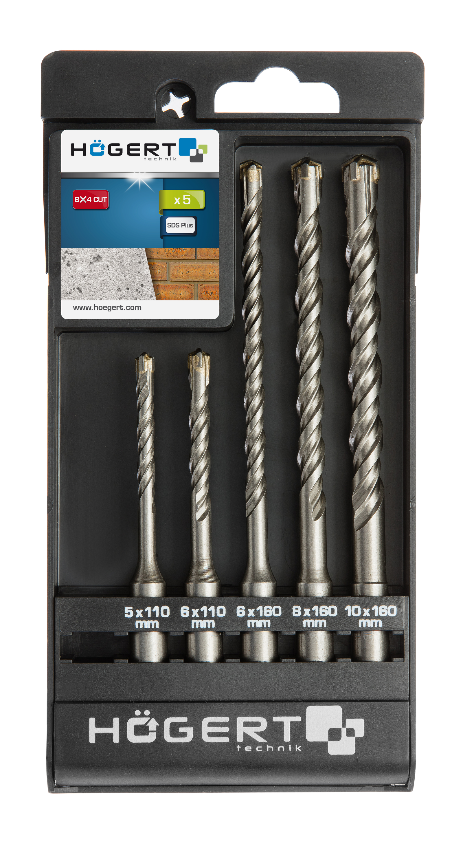 Grąžtų komplektas betonui SDS+ / 5vnt.Komplekte: 5×110 / 6×110 / 6×160 / 8×160 / 10×160 mm