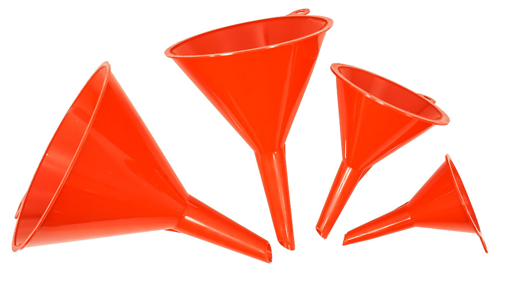 Skirtingo skersmens 4 universalių plastikinių piltuvų rinkinys (52, 75, 95, 115 mm).