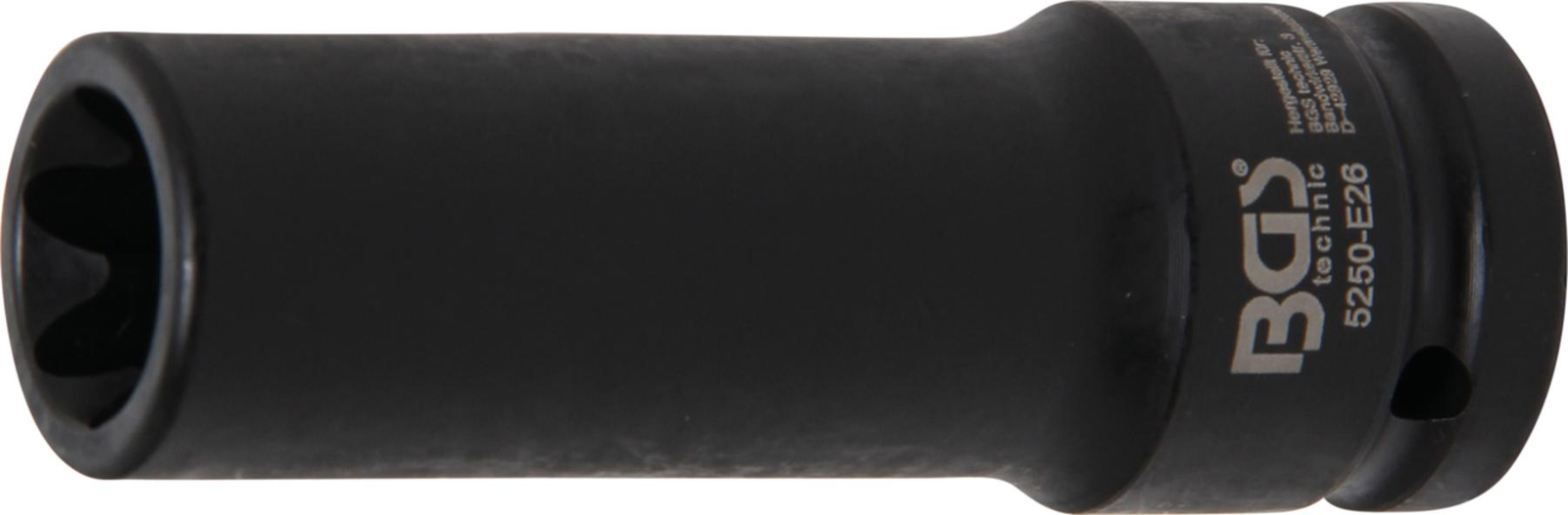 Descriptionfor both manual and impact wrenchescan be fixed on impact wrench by pin and O-ringTechnical dataDrive profile Internal squareDrive profile size, inch 3/4 "Drive profile size, metric 20 mmOutput profile E-TypeWrench size E26Material Chrome Molybdenum SteelLength 110 mm