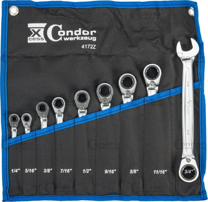 Terkšlinių raktų komplektas su perjungimu coliniai 1/4-3/4" 9dalių / Xcess