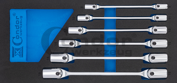 chrome vanadium steel / satin finishKomplekte: 8×9, 10×11, 12×13, 14×15, 16×17, 18×19 mmDėklo dydis: 1/3 (36x185x395 mm)