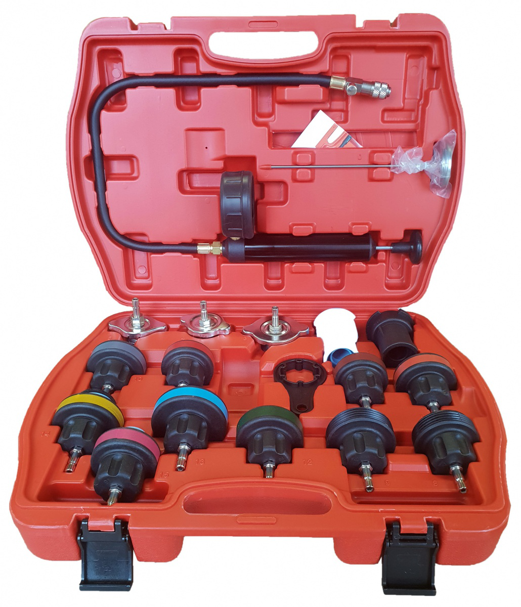 Radiatoriaus spaudimo ir aušinimo sistemos testavimo komplektas, 26vnt.
