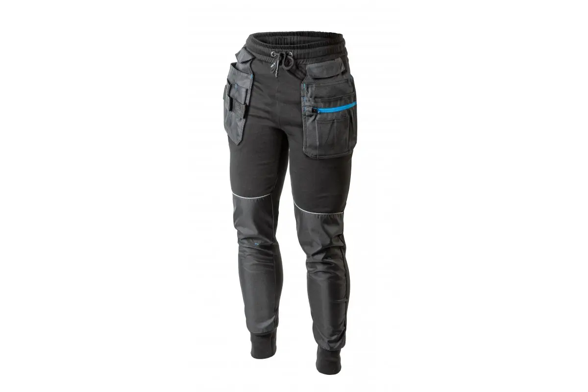 labai elastinga medžiaga, užtikrinanti judėjimo laisvę;tvirto pynimo darbo kelnės;medžiagos svoris 320 g/m²;medžiaga: trikotažas 65 % medvilnės, 35 % poliesterio;priekinės kojos sutvirtintos OXFORD 600D audiniu;naudojami šviesą atspindintys elementai;