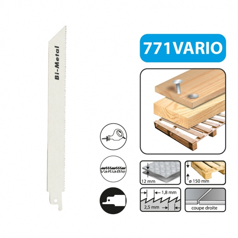 SABER SAW BLADESVariable pitch, straight and flush cut in wood with nails, metal sheet and plastic.