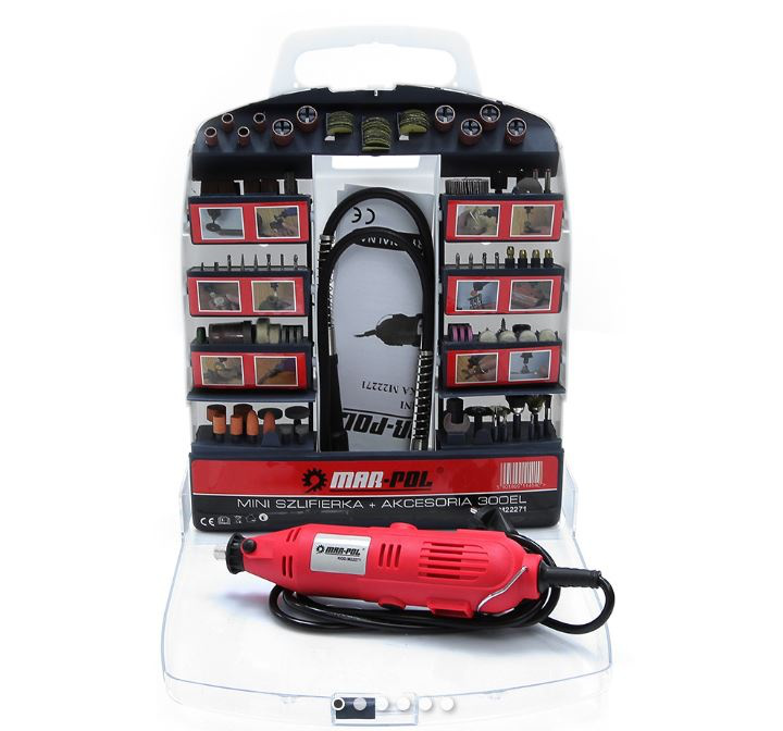 Input power rating of 270W Voltage 230V Weight 0.55 kg Speed without load 8500-32500 rpm CONTENT OF THE KIT: High quality flexible shaft 300 pieces of high quality fixture Convenient storage box