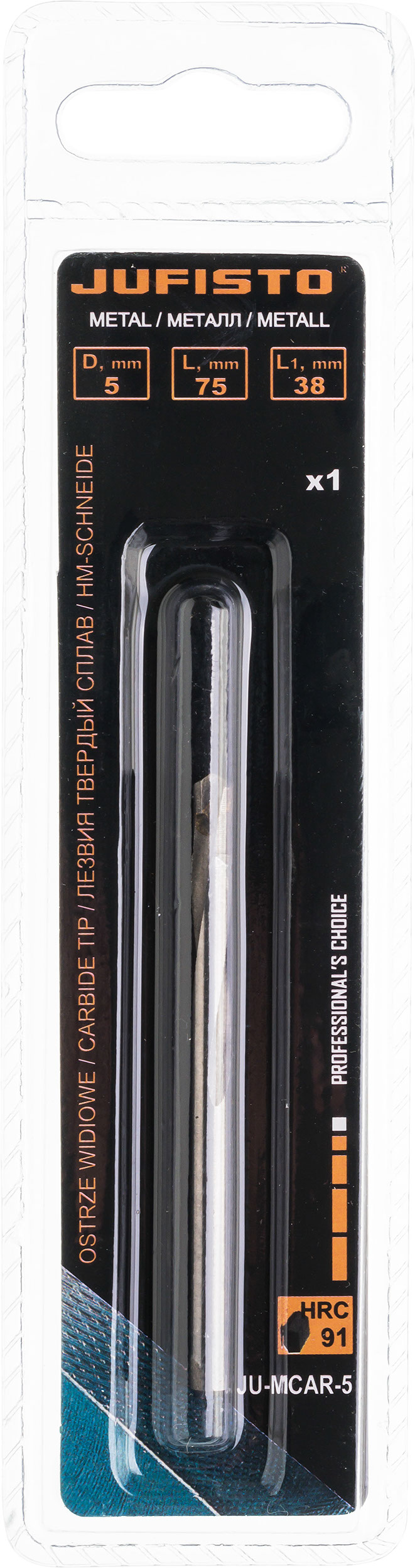 Grąžto diametras – 5 mmIlgis – 75 mmDarbinis ilgis – 38 mm