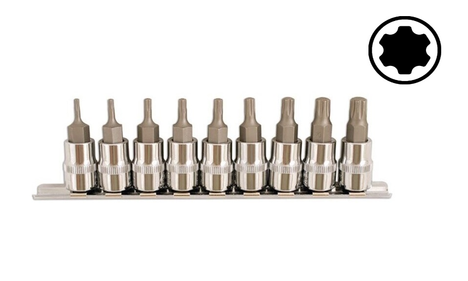 Įpresuoti TORXplus antgaliai 3/8 galvutėse (TPS10-TPS50)