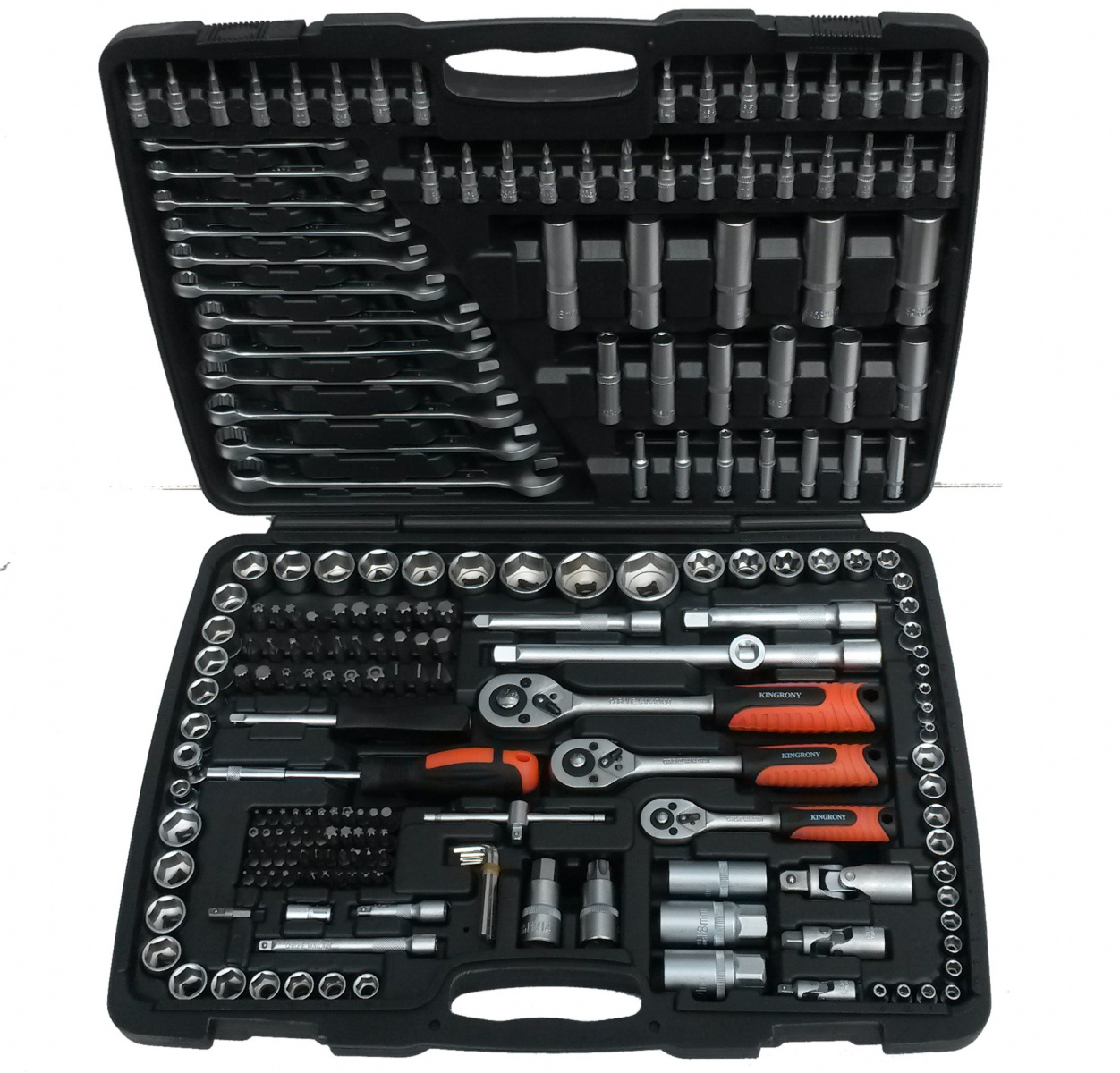 Galvučių dydis [mm] 1/2"- 10-32mm, 3/8"- 10-19mm, 1/4"- 4-14mmElementų skaičius[vnt.] 216Visos dalys pagamintos iš chrome vanadium plieno- 6 kampės galvutės- 1 / 4 ", 3 / 8" ir 1 / 2 "