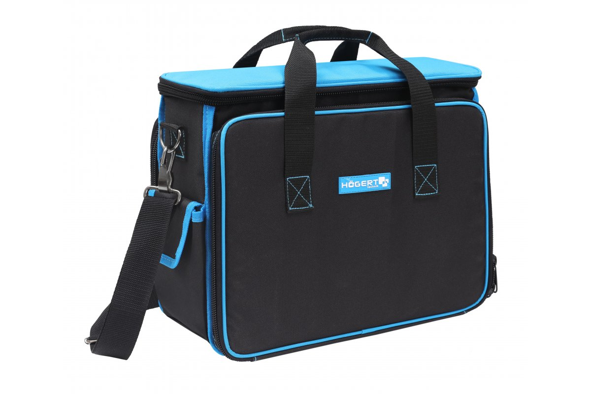 Įrankių krepšys pagamintas iš aukštos kokybės 600D poliesterio, pasižymintis išskirtiniu atsparumu dilimui ir galimai žalai. Tai užtikrina ne tik konstrukcijos lengvumą ir lankstumą, bet ir efektyvią apsaugą nuo sunkių oro sąlygų bei iššūkių, susijusių su nuolatiniu naudojimu darbo aplinkoje. Visiškai optimizuota saugojimo vieta su 29 specializuotomis kišenėmis, kad būtų galima tiksliai organizuoti ir greitai pasiekti įrankius. Ergonomiškas kišenių išdėstymas, skirtas techninio darbo specifikai, užtikrinantis maksimalų turimos erdvės išnaudojimą.