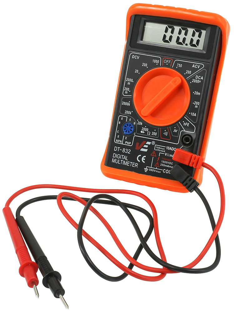 Ekranas: LCDMaitinimo šaltinis: 9 V, 6F22 baterijos (6RL61)Kintamosios srovės įtampos matavimas: A.C. 0 – 750 Vįtampos matavimas: D.C. 0 – 1000 VDC matavimas: D.C. 0 – 10 aAtsparumo matavimas: 0 – 2 MΩH Fe (tranzistoriaus sistemoje): 1 – 1000Grandinės tęstinumo testas: ~ 0 – 70 ΩDarbinė temperatūra: 0 ̊C iki 40 ̊CMatmenys: 126 x 70 x 24 mmSvoris: 170 g