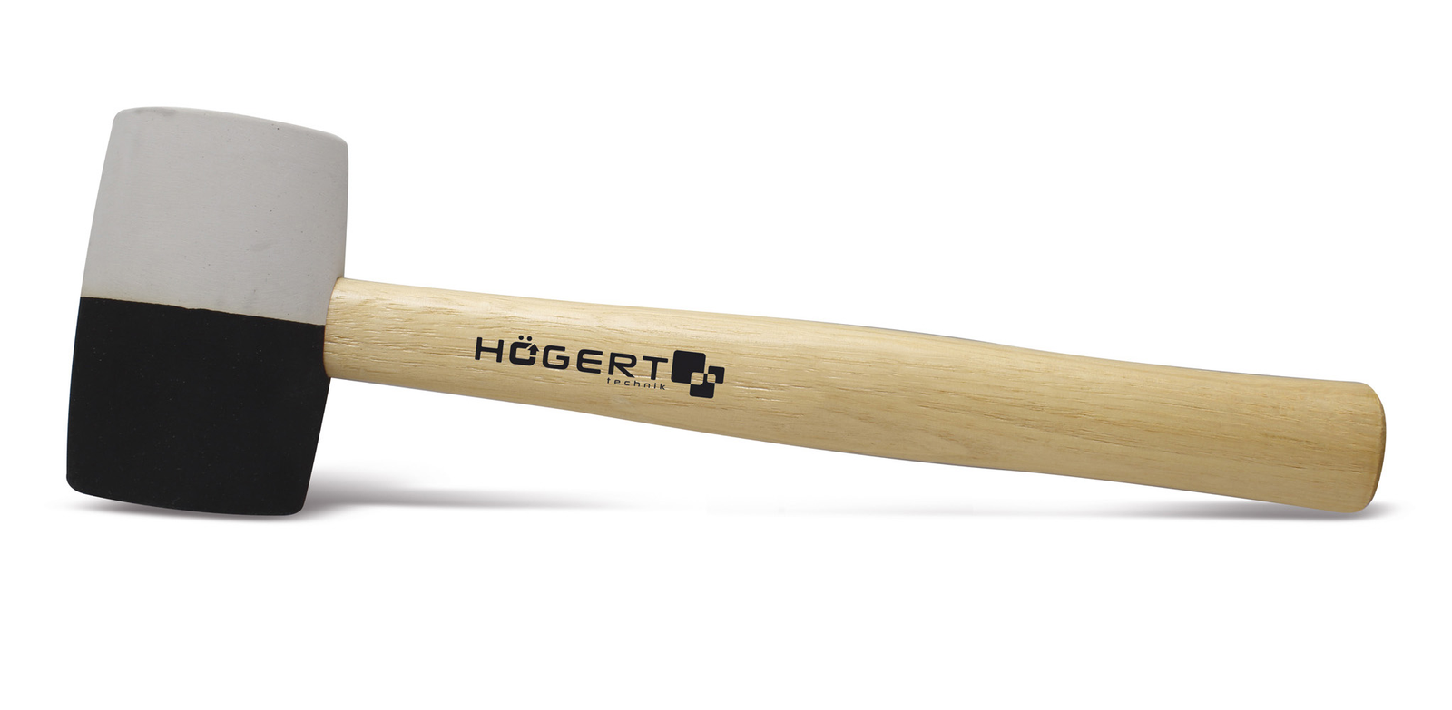 Description A rubber mallet with a wooden handle designed for masonry, tiling, brick paving, finishing and repairs work, etc. Characteristics – the handle made of a high quality ash wood that undergone a drying process – ergonomic wooden handle protected against UV rays and moisture – the rubber face protects the surface from damage and marks