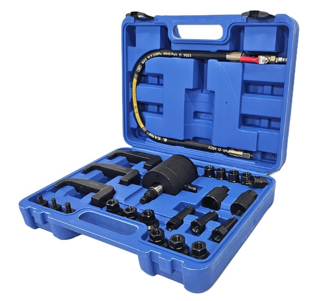 Rinkinio paskirtis – ištrauki įstrigusius „Common Rail“ BOSCH, DELPHI ir kitų kuro sistemų purkštukus.Pneumatic injector puller Common Rail diesel BOSCH DELPHI SIEMENS 25 units (M8-M31)