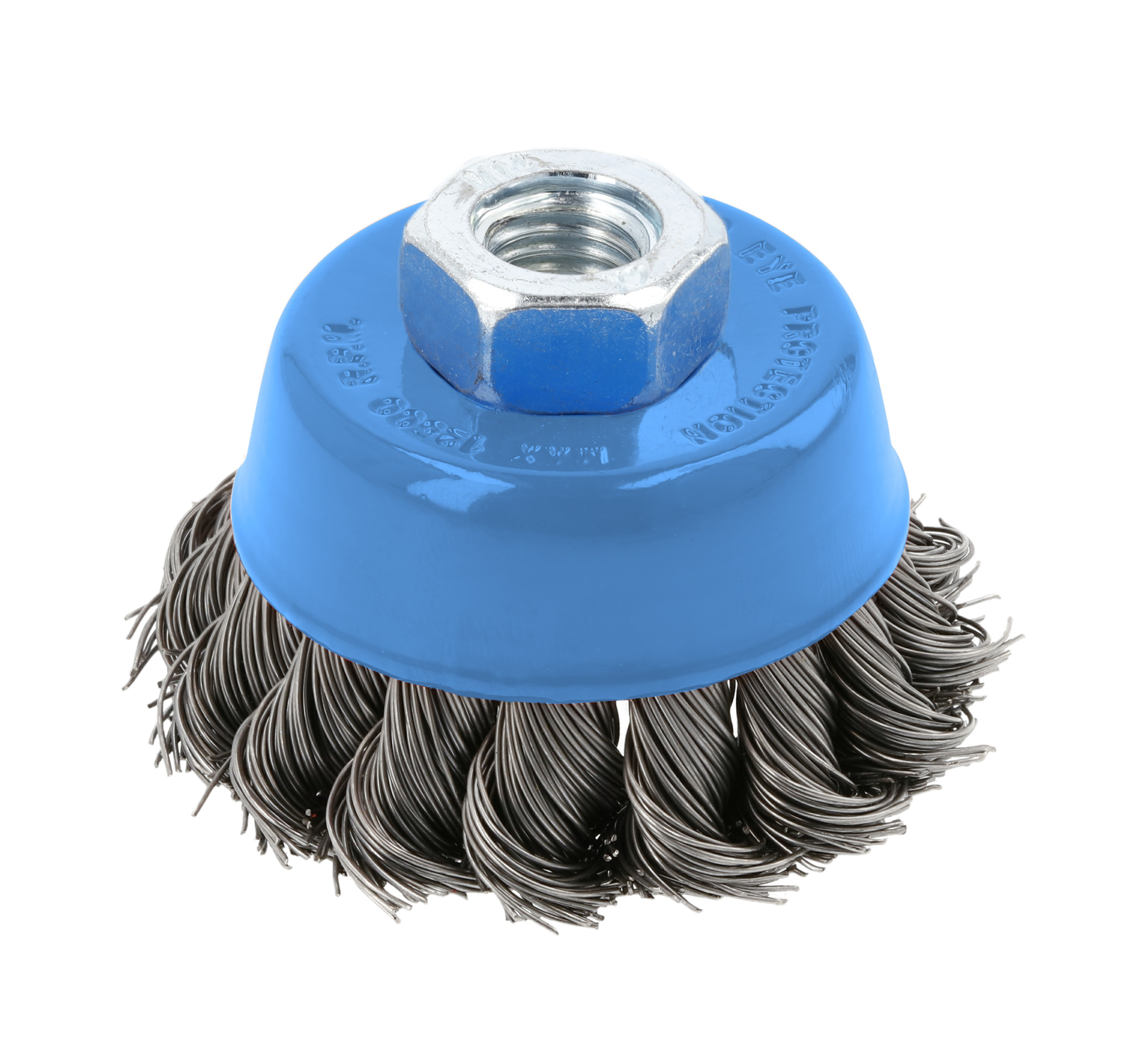Characteristic for angle grinder; steel wire; equipped with a dense, high-quality braided wire, which makes it possible to achieve high efficiency during cleaning and in other works; wire diameter 0.5 mm; M14 thread; max. revolutions 8500 RPM.