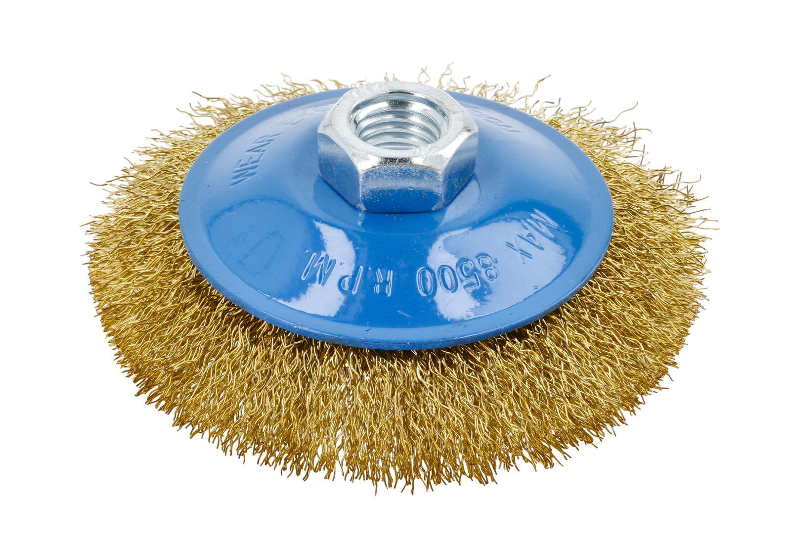 Characteristic for angle grinder; brass wire; equipped with a dense, high-quality crimped wire, which allows you to achieve high efficiency during cleaning and in other works; wire diameter 0.3 mm; M14 thread; max. revolutions 8500 RPM.