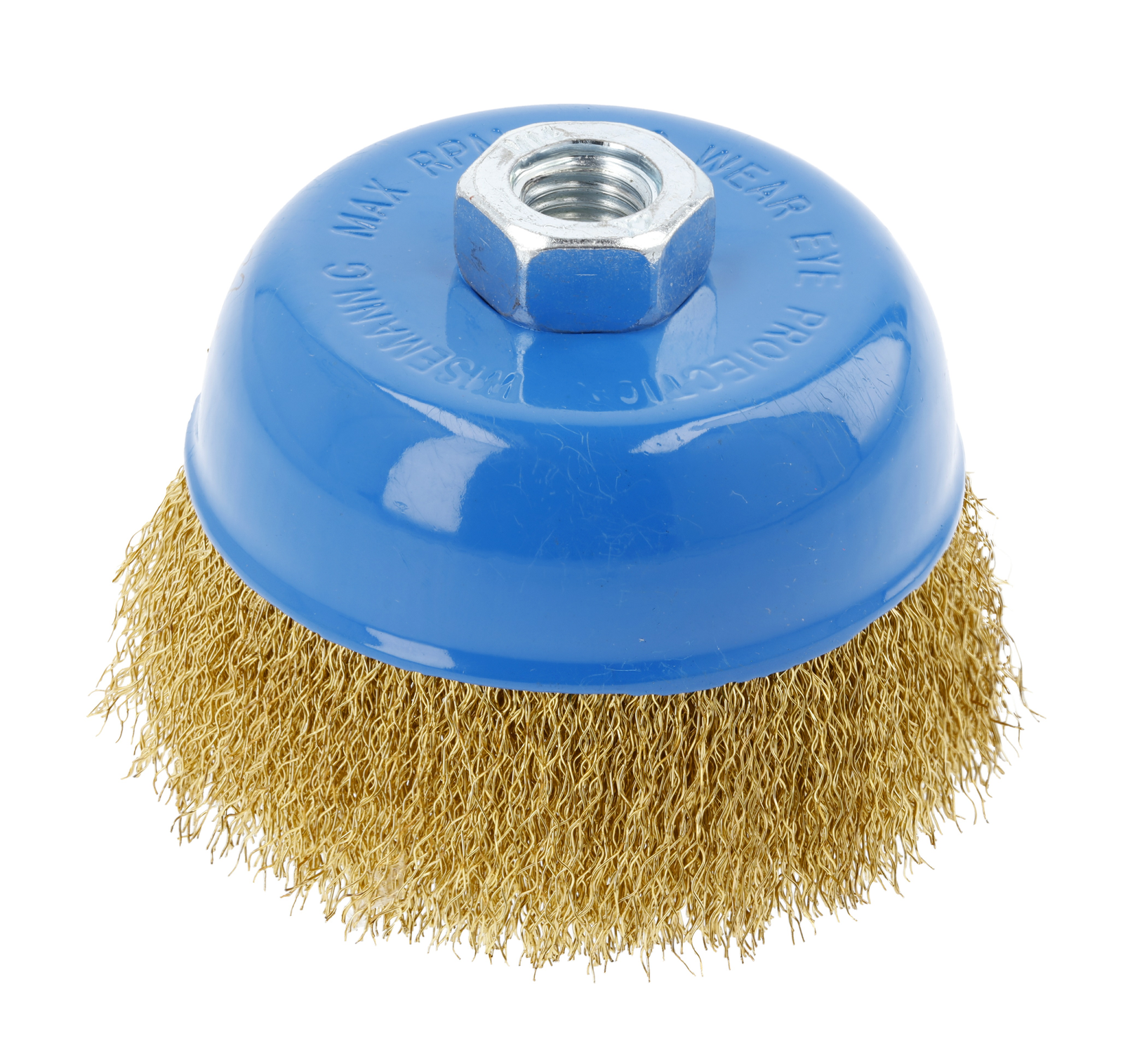 Characteristic for angle grinder; brass wire; equipped with a dense, high-quality crimped wire, which allows you to achieve high efficiency during cleaning and in other works; wire diameter 0.3 mm; M14 thread; max. revolutions 12 500 RPM.