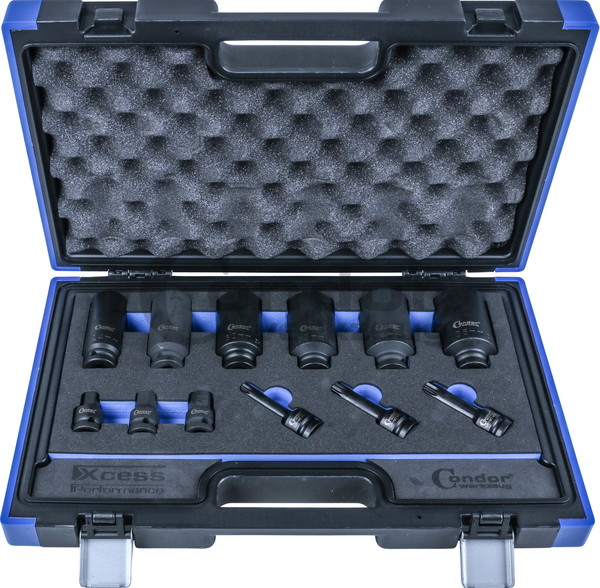 XcessPerformanceChrome-molybdenum-steel Komplekte: 1/2 12-kamp. galvos (85mm ilgio) – 24, 27, 30, 32, 34, 36 mm. 1/2 SPLINE antgaliai (78mm ilgio) – M14, M16, M18 1/2 HEX 6-kampiai antgaliai (40mm ilgio) – 14, 17, 19 mm.