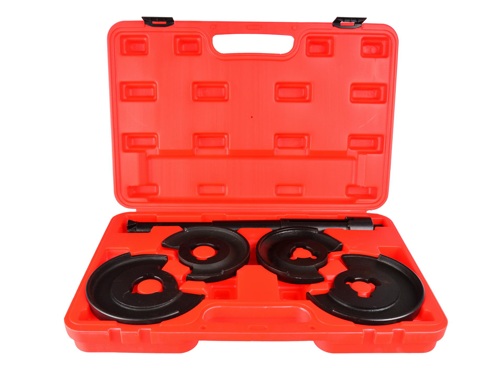 Produkto charakteristikosTeleskopinis spyruoklinis kompresorius, kurio diapazonas yra 120 – 325 mmTrijų pakopų rankinio saugos užraktasDiskai, kurių darbinis diapazonas yra 70 – 130 mm ir 90 – 150 mm„Mercedes“: 107W, 116W, 123W, 124W, 126W, 129W, 140W, 170W, 201W, 202W, 208W, 210W, 211W„BMW E31“, „Saab 90“, „Saab 900“, „Chrysler“, „Ford“, „Skoda“, „Opel“, „Peugeot 406/605“, „Volvo“,„Hyundai“, „Toyota“, „Mitsubishi“.Komplekto komponentaiTeleskopinis rankena 120 – 325 mm2 x plokštė 70 – 130 mm2 x plokštė 90 – 150 mmSvoris: 6,5kg