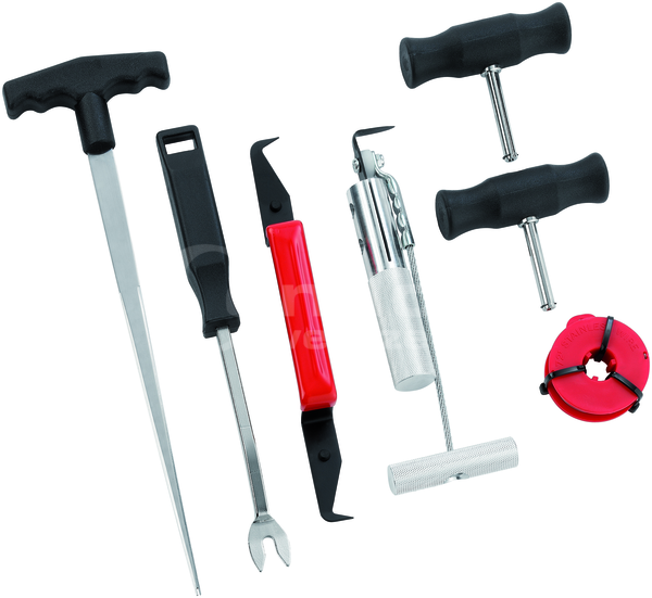 content:1x square cutting wire, 20 m2x wire gripping handles1x pulling knife, for cutting the adhesive compound1x wire feeder, for inserting wire through windscreen sealing1x interior lever1x trim and air grill lever