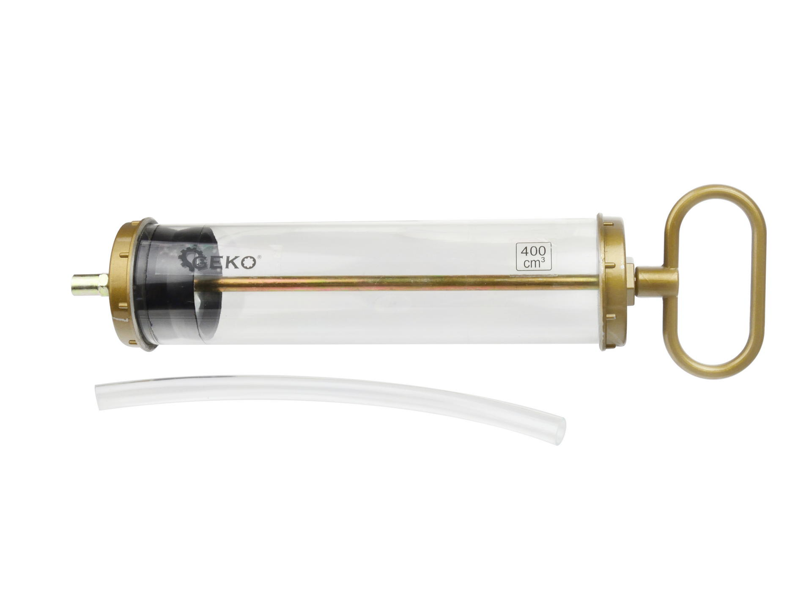 Alyvos išsiurbimo ir pripildymo švirkštas puikiai tinka keičiant tepalą varikliuose, greičių dėžėse. Permatoma talpa leidžia lengvai matyti tepalo spalvą.Talpa: 400mlTalpos diametras: 60mmKomplekte lanksti permatoma žarnelė 12mm storio / 230mm ilgio