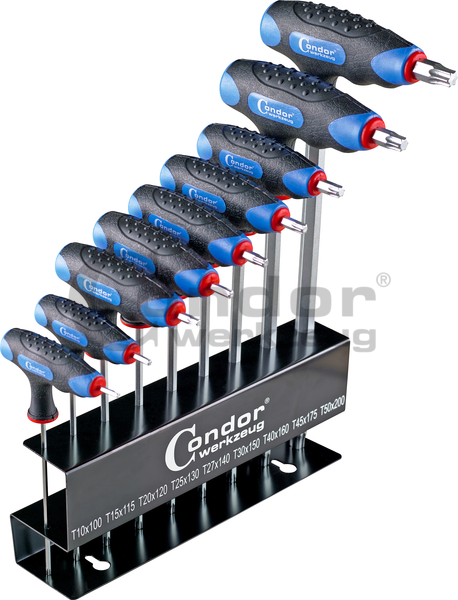 T-formos TORX atsuktuvų-raktų komplektas su stovu / T10-T50