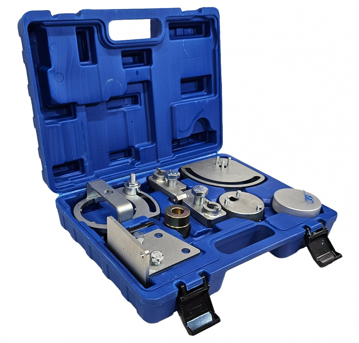 for adjusting and checking the engine timingsuitable for Volvo S80, XC90, XC60, XC70 3.0T, 3.2 with T6 engine as of 2007scope of delivery:crankshaft rotating tool, to be used as OEM 9997257, 303-1219camshaft alignment tool, to be used as OEM 9997261 303 -1223tool for assembling and disassembling the end cover, to be used as OEM 9997263, 303-1225tool for assembling and disassembling the end cover, to be used as OEM 9997264, 303-1226T-star socket, T60, 12.5 mm (1/2″”) drive, to be used as OEM 9997272mounting bracket, to be used as OEM 9997271end cover adjusting tool, to be used as OEM 9997266end cover adjusting tool, to be used as OEM 9997267